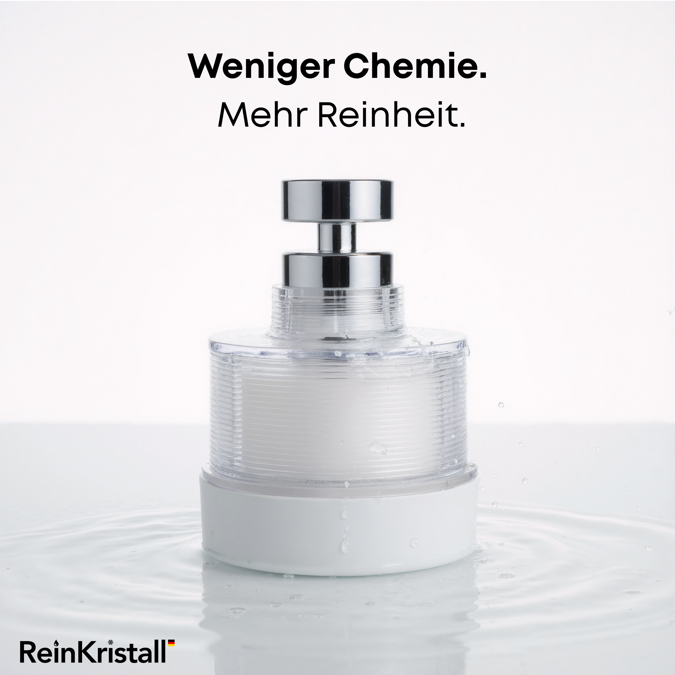 ReinKristall kombiniert Aktivkohle mit mehrstufiger Filtertechnologie, um unerwünschte Stoffe im Leitungswasser zu reduzieren - einfach, natürlich und überall dort, wo Wasser täglich gebraucht wird: am Wasserhahn und unter der Dusche.